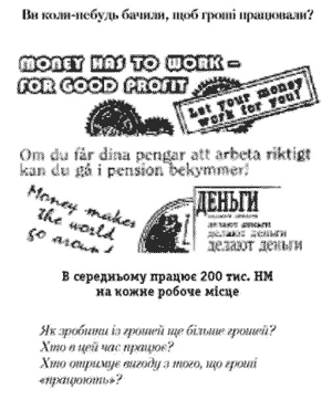 Гроші без процентів і інфляції (продовження)Маргріт КЕННЕДІ УРЯДИ, ПОЛІТИКИ, ВЛАСНИКИ БАНКІВ І ЕКОНОМІСТИУ більшості країн монополією на друк грошей володіє центральний уряд. Тому офіційний іспит нової грошової системи, якщо сюди включається і готівка, повинен ухвалити і підтримати уряд. Очевидно, спроба введення безпроцентних грошей має колосальне політичне значення. Вона вимагає від представників правлячої верхівки мужності визнати той факт, що вони так довго терпіли цю несправедливу систему. З іншої сторони, для більшості людей дійсно дуже важко зрозуміти, чому гроші краще обкласти «платою», ніж допускати оплату відсотків. Це так само важко зрозуміти, як те, що Сонце не обертається навколо Землі, а Земля — навколо Сонця. Ми розуміємо, що це так, але нам дуже важко це собі уявити. Нині уряди, політики, банки й економічна система відповідальні за виникнення більшості проблем, спричинених основними вадами грошової системи. Їхні відповідні дії — боротьба з наслідками і половинчаті рішення, наприклад, часткове звільнення від боргів, конверсія боргів, тимчасові безповоротні позички з метою зниження соціальної напруги.