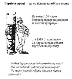 БІДНІКожен середньостатистичний німецький сімейний бюджет мав у 1986 р. суму, яка становила 90 тис. марок. Це було б прекрасним доказом нашого добробуту, якщо було б розподілене порівняно рівномірно. Гірка правда ж полягає в тому, що, як показує рис. 11, одна частина населення володіє лише 4% усього багатства, а інша — 96%. При цьому багатство 10% населення безупинно росте завдяки всім іншим. Це, наприклад, пояснює, чому родини, які належать до нижнього прошарку середнього класу ФРН, дедалі частіше змушені вдаватися до допомоги установ добродійності. Безробіття і бідність зростають, хоча була створена розгалужена «соціальна мережа» для їхнього подолання. Найважливіший фактор перерозподілу багатства — це відсотки за гроші, які щодня переводять 1100 млн марок від тих, хто працює, до тих, хто володіє капіталом. Хоча всі уряди соціальної орієнтації намагаються усунути виникаючу при цьому нерівновагу через оподатковування, це ніде не призвело навіть до відносного балансу. Витрати на зростаючий апарат соціальної бюрократії виражаються у формі зростаючих податків. При цьому рідко враховують втрати часу, зусиль і приниження, яких зазнали люди через бюрократичну машину. Абсурдність грошової системи полягає у тому, що спершу відбирає у людини її справедливу частку, щоб потім повернути частину цих грошей. Це украй неефективно у формі виплат у системі добродійності, майже ніколи її не досліджували експерти, не була предметом широкого обговорення. Поки ті 80% населення, що постійно за усіх платять, не зрозуміють, як це відбувається, чи можна чекати змін? Яскравий приклад того, що відсотки гальмують економічний розвиток, показаний на рис. 12. Порівняння процентних ставок, що підвищуються, з кількістю банкрутств, яка зростає у торгівлі і промисловості, а також збільшення кількості безробітних однозначно підтверджує авангардну функцію, — тобто значення відсотків в економічному житті і є переконливим аргументом на користь введення безпроцентних грошей. Ця статистика не враховує додаткові втрати від алкоголізму, руйнування родин, росту злочинності. І це теж можна ефективно знизити при здійсненні грошової реформи. Дилема країн третього світу (рис. 13) демонструє нам нашу власну ситуацію, як через збільшувальне скло. Це карикатура того, що відбувається в індустріалізованих країнах і спричинене тими ж структурними вадами грошової системи. На відміну від розвинених країн, що у цілому на системі виграють, слаборозвинені країни зазнають збитків. Щодня ми одержуємо 200 млн доларів — відсотки з країн третього світу. Це вдвічі більше, ніж «допомога», яку ми їм надаємо. 1986 р. близько третини загальної заборгованості країн третього світу, яка становила 1000 млрд доларів, пішло на покриття відсотків за раніше отримані кредити. Немає жодної надії на те, що країни, які розвиваються, зможуть вийти з ситуації без великої кризи або глибоких політичних потрясінь. Якщо війна означає голод, смерть, соціальну і людську убогість, то «третя світова воїна» йде вже на повний хід. Ця війна не була оголошена офіційно. Це війна, зброя якої — лихварські відсотки, маніпуляція цінами, нечесні умови угод. Це війна, що заганяє людей у безробіття, хвороби і злочинність. Доки ми можемо це терпіти? Вернер Розенбергер говорить про «систему корупції» — тісно з'єднані корумповані володарі (М