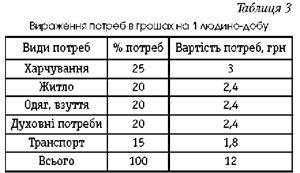 Модель майбутніх грошей у суспільстві Середні витрати на харчування становлять три тисячі Ккал. за добу. Якщо взяти 10 калорій та прийняти ціну 1 коп., тоді харчування одній особі на добу коштуватиме три гривні. За даними С. Подолинського, людина витрачає енергії: 1-2% — на людські потреби, 4-8% — на дихання, 20-30% — на випаровування води з організму, 60-70% — на випромінювання, на механічну м'язову роботу — 20%, на розумову — понад 20%. ККД людини є досить високим — понад 40%. Для життєдіяльності суспільства потрібні: харчування, житло, одяг і взуття, духовні потреби, транспорт. Все це приймаємо за 100%. Середні норми для України можна прийняти виходячи з основної потреби — харчування. Необхідна середня кількість грошей на одну людину становить: Література 1. Гігієна харчування з основами нутріціології / Під ред. Ю. Н. Ципріяна. — К., 1986. 2. Кеннеді М. Гроші без відсотків і інфляції // ПЕРСОНАЛ. — 2005. — № 9. — С. 28–37. 3. Подолинський С. А. Вибрані твори. — К., 2000. 4. Руденко М. Д. Енергія прогресу. — К., 1998. 5. Смоляр А. Н. Гігієна і фізіологія харчування. — К., 1989. |