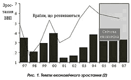Джерело: M. Mussa. Global Economic Prospects 2006/2007: Continued Solid Growth in 2006, Rsing Risks for Inflation, Financial Markets, and Growth for 2007 // Presentation at the ninth semiannual meeting on Global on Global Economic Prospects. — Washington DC, April 11, 2006. Література 1. O'Brien R. Global Financial Integration. The End of Geography. — L., 1992. — P. 5. 2. Иванов Н. Глобализация и проблемы оптимальной стратегии развития // Мировая экономика и междуна родные отношения. — 2000. — № 2. — С. 15–19; № 3. — С. 12–18. 3. Рудый К. В. Финансовые кризисы: теория, история, политика / К. В. Рудый. — М.: Новое знание, 2003. 4. Луцишин З. О. Трансформація сітової фінансової системи в умовах глобалізації. — К.: Видавничий центр «ДрУк», 2002. 5. Кочетов Э. Г. Геоэкономика (Освоение мирового экономического пространства): Учебник. — М.: Изд-во БЕК, 2002. 6. Perspectives economiques mondiales // OCDE (Or ganisation de cooperation et de developpement eco-nomiques). — #75. — 2005. — Paris. 7. Financement du developpement dans le monde. — Washington: Banque mondiale, 2005. |