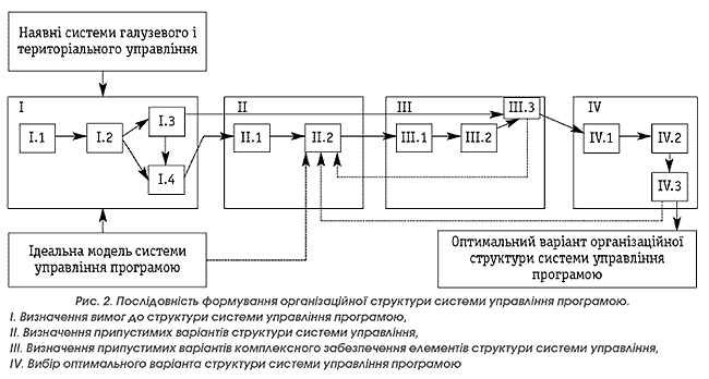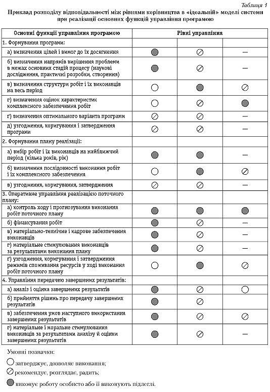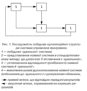 Принципи побудови системи управління реалізацією програмиАра ГЮРДЖЯН, заступник керівника апарату президента Республіки Вірменія, кандидат економічних наук Євгеній НАУМОВ, віце-президент Національної технологічної палати Російської Федерації, кандидат економічних наук, професор При формуванні структури системи управління відбувається організаційно-правове закріплення за структурними підрозділами і відповідальними виконавцями органу керівництва основних функцій і процедур прийняття рішень, що забезпечують управління процесом реалізації програми. В основі побудови організаційної структури органу керівництва програмою закладені наступні принципи: • централізація процесу управління реалізацією програми в єдиному органі; • чітка регламентація процесу прийняття рішень при управлінні програмою і розподіл повноважень та відповідальності між усіма рівнями системи управління; • повнота відображення всіх функцій управління у функціях підрозділів і відповідальних виконавців органу керування програмою; • дотримання співпідпорядкованості підсистем управління, які належать різним рівням ієрархії системи управління програмою. Централізація управління програмою у межах спеціального органу керівництва є одним із найбільш важливих відмінностей програмно-цільових методів від традиційних способів організації управління. Централізація управління, як показує приклад, досвід у сфері програм створення космічної і військової техніки дозволяють запобігти затягуванню термінів виконання робіт, значно скоротити, а, у кількох випадках, і уникнути затримок у передачі і використанні завершених результатів. Центральний орган керівництва створюється в період формування програми і припиняє своє функціонування після її реалізації. Тому централізація управління в ході реалізації програми повинна поєднатися з господарською самостійністю організацій-виконавців, які мають різну відомчу підпорядкованість. Отже, центральний орган керівництва програмою своїми повноваженнями має доповнювати, а не підмінювати наявні адміністративні органи галузевого і територіального управління. Ця особливість програмно-цільового управління вимагає чіткої регламентації всіх функцій повного циклу процесу управління і розподілу повноважень та відповідальності за прийняття рішень між різними рівнями системи управління програмою. Можливі різні форми організації управління реалізацією програми, які тією чи іншою мірою відображають описані вище особливості програмно-цільового управління. У цій роботі пропонується загальний підхід до формування організаційної структури системи управління програмою, у межах якого можна дати повніше обґрунтування вибору тих чи інших форм організації управління. Важливою рисою цього підходу, що відрізняє його від традиційного, а останній ґрунтується лише на усуненні недоліків, виявлених при ретроспективному аналізі систем управління, є можливість цілеспрямованого, планомірного наближення наявної системи управління до більш досконалої, розробленої на основі принципів програмно-цільового управління. Якщо в межах традиційного підходу до вдосконалювання організації управління спочатку фіксуються недоліки системи, потім аналізуються причини їх виникнення і пропонуються заходи, спрямовані н