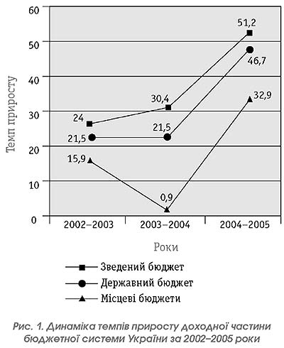 Отже, за період 2003–2004 рр. за зростання доходів зведеного бюджету на 1,0% доходи державного бюджету зростають на 1,4%, а доходи місцевих бюджетів — лише на 0,1%, як і в попередній період, відстаючи від динаміки доходів державного бюджету. Таблиця 3. Динаміка коефіцієнтів еластичності доходної частини бюджетної системи України за 2004-2005 роки