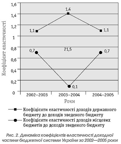 Таблиця 4. Динаміка коефіцієнтів еластичності доходної частини бюджетної системи України за 2002-2005 роки