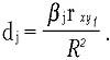 З урахуванням мультиколінеарності зв'язку між показниками оцінки у ваги окремих факторів у формуванні результативної ознаки, наприклад рівня ВДВ, можна визначити на основі показників множинної детермінації R2, парної кореляції r i j та стандартизованих коефіцієнтів регресії — β-коефіцієнтів за формулою