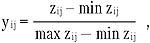 де min(max) zi j — мінімальне (максимальне) значення відхилення, і = const; yi j стандартизоване значення (бал) показника x i j.