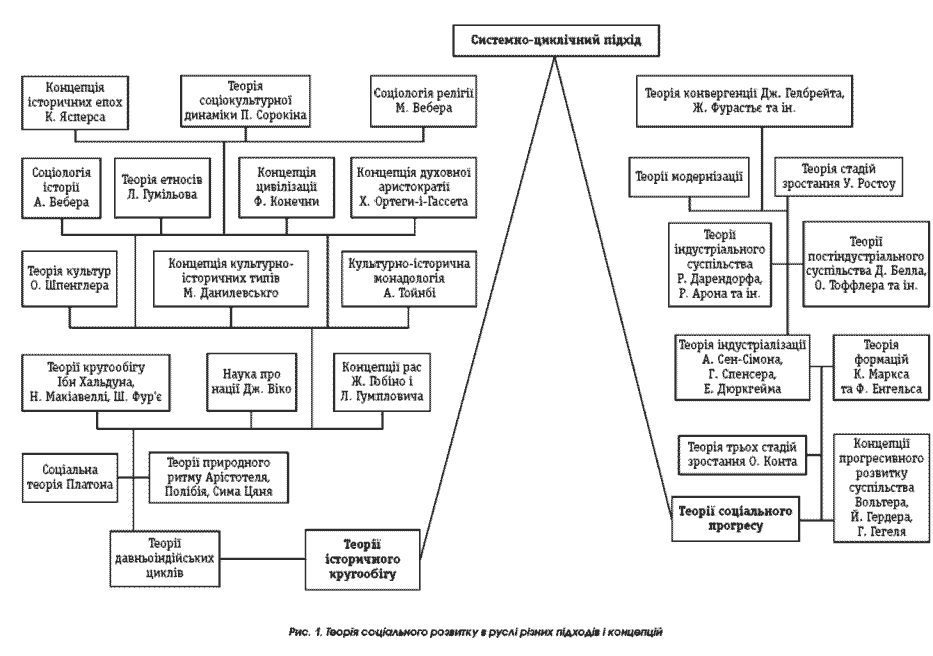 Закони соціального розвитку й управління: вступ (початок)Георгій ЩОКІН Соціальний розвиток — це процес життєдіяльності людства та його складових частин (рас, мегаетносів, етносів, субетносів) у навколишньому природному середовищі, який зумовлений як свободою людської волі, так і об'єктивними закономірностями. Ці закономірності або закони — певна фіксація стану, який виражає загальний перебіг речей. Науковий закон — це знання, яке формулюється людьми в поняттях, які закорінені у природі (тобто в об'єктивному бутті). При цьому будь-які явища відбуваються не внаслідок того чи іншого закону, а, навпаки, ці закони завжди бувають наслідком відповідних явищ. Людина як ланка соціально-історичного процесу сама підпорядкована об'єктивному закону, але завдяки своєму знанню природи вона може певною мірою підкорити собі її власну закономірність, створивши умови, при яких, відповідно до конкретного об'єктивного закону, відбувається і певна подія [3, c. 162]. Люди, однак, самі не створюють законів соціального розвитку, а тільки обмежують або розширюють сферу їхньої дії відповідно до своїх потреб та інтересів, оскільки закони існують об'єктивно, незалежно від свідомості людей, «як вираження необхідних, істотних, внутрішніх відносин між властивостями речей або різних тенденцій розвитку» [8, c. 134]. Закон, таким чином, — це відображення встановленого порядку й динаміки речей, який протистоїть Хаосу. Хаос — це неупорядкована першопотенція, яка поєднує можливість універсального породження й універсального поглинання всього існуючого. Звідси Хаос можна розглядати не тільки як причину порушення порядку, а й як джерело його виникнення. Тому закон і хаос перебувають в онтологічній єдності й одночасно протистоять один одному, даючи змогу фіксувати єдність таких протилежних аспектів буття, як сталість, повторюваність, упорядкованість, загальність, з одного боку, і випадковість, непередбаченість, безладність, ірраціональність — з іншого [9, с. 220]. Закономірності соціального розвитку, які прокладають шлях через подолання соціального хаосу, вивчає соціальна філософія. Це, у широкому сенсі, — розділ філософії, в якому вивчається якісна своєрідність людського суспільства (його відмінність від природи, його взаємозв'язок із державою, релігією, мораллю, культурою), а також його цілі (суспільні ідеали або цінності), генезис і розвиток (соціальна історія), долі й перспективи, а у вузькому сенсі — це розділ соціології, який досліджує зазначені проблеми за допомогою категорій соціологічної теорії і близьких до неї наук (політичної економії, антропології, психології, культурології та ін.). У цій площині філософського знання лежить філософія історії, яка охоплює найзагальніші закони розвитку соціально-історичного процесу, як от сенс і напрямок історії, розчленовування й послідовність основних історичних епох, специфіка історичного процесу, зіставлення в ньому природи й цілеспрямованої людської діяльності, свободи й необхідності, а також можливості пізнання світу людиною, критерії істинності і вірогідності знання [6, с. 319–320]. У ХХ ст. науковий підхід до аналізу категорій і понять соціально-історичного розвитку поєднав філолофсько-ан-тропологічний, соціологічний, психологічний, а також синергетико-кібернетичний* підходи. Різні підходи до розуміння соціал